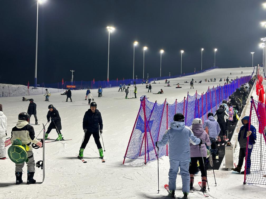 位于吉林省辽源市的天陆山滑雪场本雪季刚刚开门营业,这座城市中的滑雪场,成为当地滑雪爱好者的新去处。“夜滑开放了全部4条雪道,开业还不到一个月,已经接待游客2万多人,其中夜滑占比接近一半。”天陆山滑雪场总经理江波说。