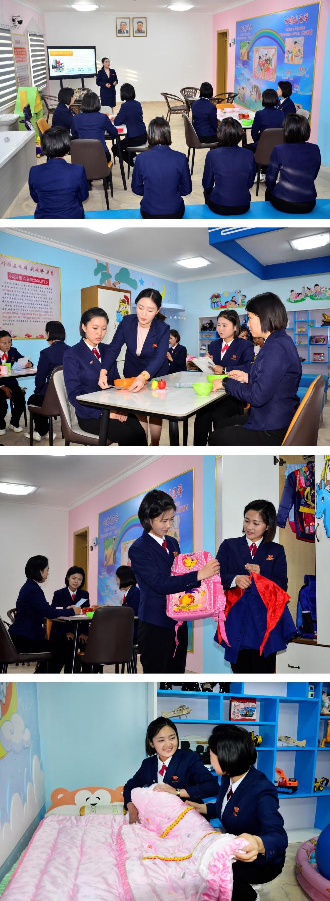 朝鲜的平壤教员大学培养幼儿园教养员和小学教师,具有模拟家庭环境的教室。这里被称为母亲教室,学生在这里养成教育工作者以亲生母亲的心情照顾孩子的品德。