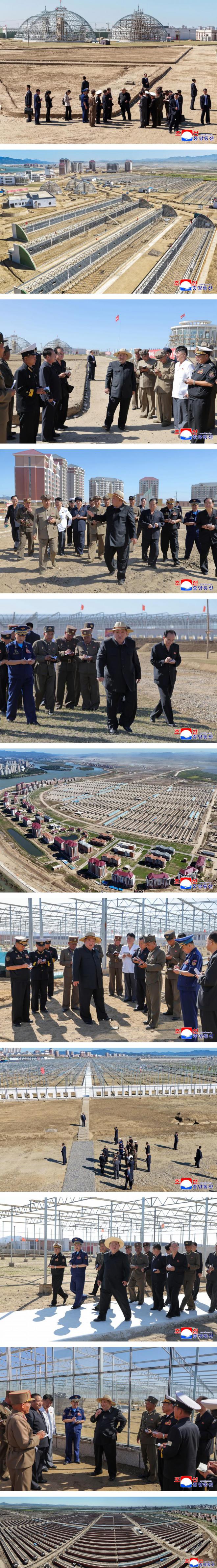 金正恩同志察看玻璃水培温室区和蔬菜科研中心等建设工地各处,具体了解了建设情况。
