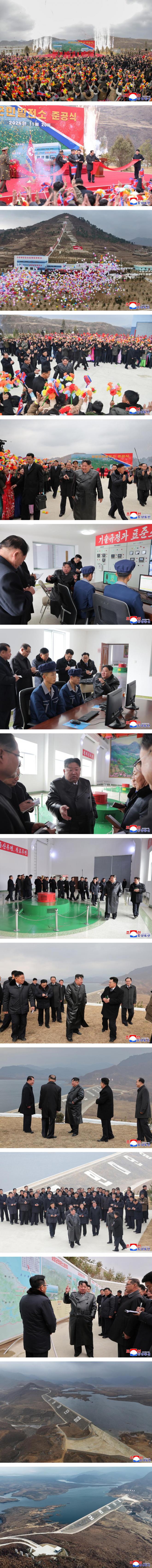 金正恩同志俯瞰着巍然屹立的发电站堤坝,说:军民大团结的威力真了不起,在江原道人民斗争史上书写又一个光辉篇章的纪念碑式创造物将永世相传我们这一代人跟随党开创国家全面繁荣时代、地方变革新局面的爱国功勋。