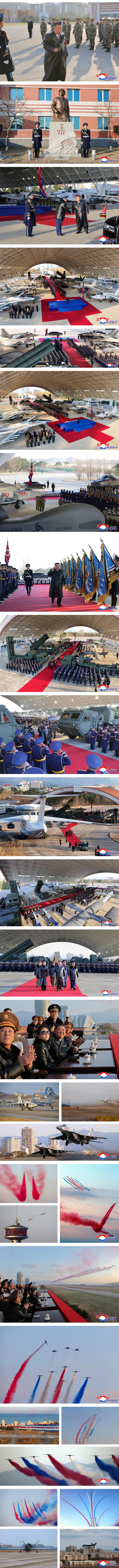金正恩同志亲切祝贺激情欢呼的全体空军官兵,并表示相信英勇的空军武装力量的全体飞行员、指挥成员和官兵继续创造胜利神话为在光荣军旗上谱写的80年伟大沿革增光添彩,坚决维护我们国家的尊严和人民的幸福。