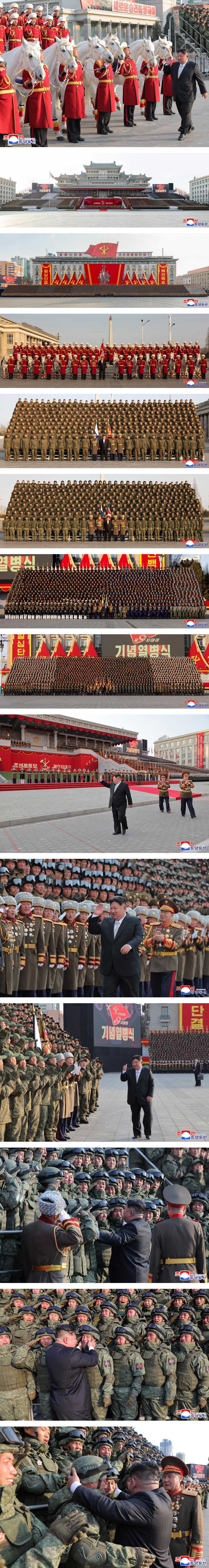 金正恩同志表示期待和相信,朝鲜人民军在胜利的阅兵广场上勇气百倍、气宇轩昂地开启的新的行军路上永远充满引以自豪的殊勋和名声。