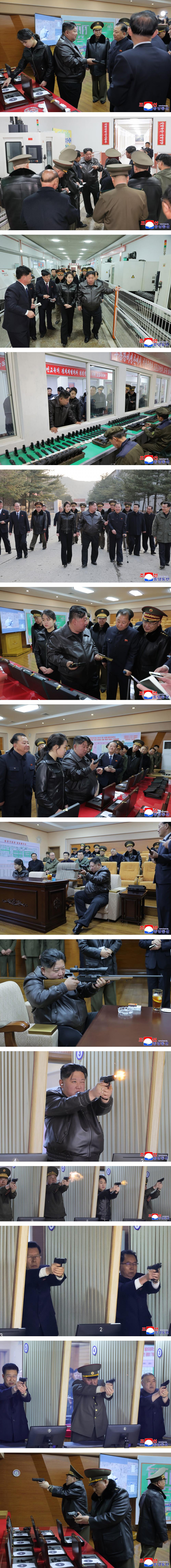 这天,金正恩同志到工厂射击馆亲自了解了开始生产的新型手枪战斗性能。